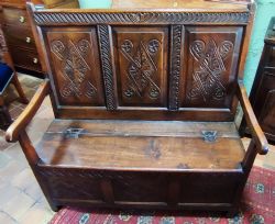 18thC Oak Settle with 5 Panelled Back
