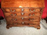 18th C Walnut Bureau with Fine Brasses, Fabulous Colour & Patination Blind Fretted Canted Corners Ogee Bracket feet. The Fall enclosing Fitted Interior with Secret Enclosures.